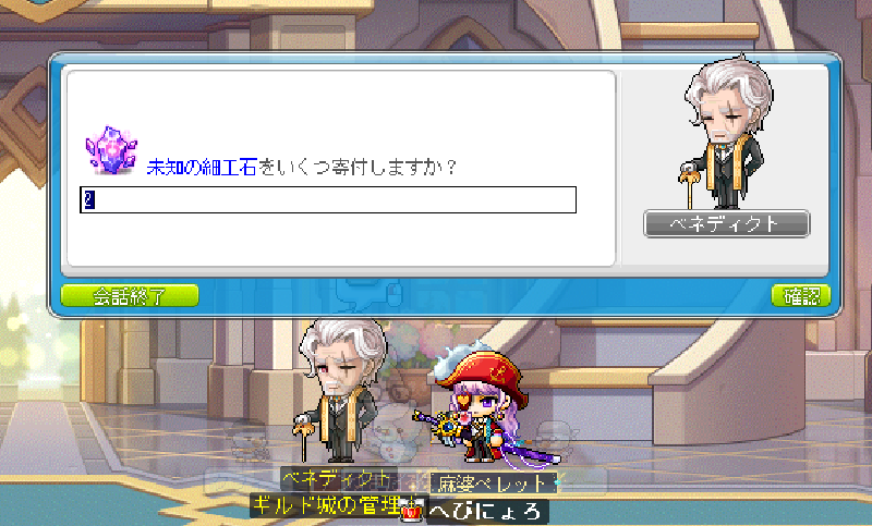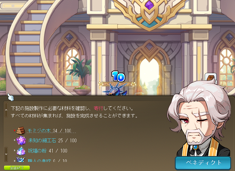 ある日ベネディクトに話しかけると、小型装飾制作の協力任務というクエストが発生していました。