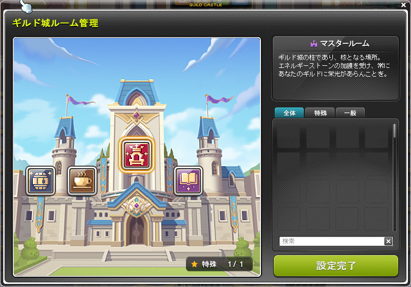 ギルド城左端に、新しい部屋のスロットが空きました。新しい部屋のスロットには以前まで右に設置していた倉庫部屋をあてがっています。
