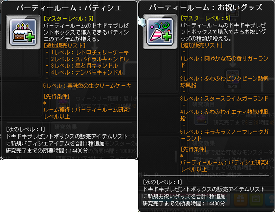 先日お伝えした通り、無事ギルド城の1段階目の最終拡張が完了し、新しい種類の部屋、特殊ルーム「補給所」と、一般ルーム「パーティールーム」の作成を進めることができるようになりました。