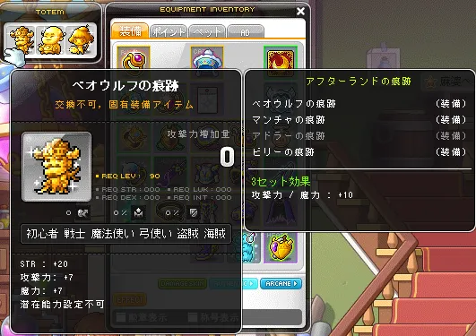 無期限で入手できるトーテム類を組み合わせたセットです。ギルド城ブローチ以外はセット効果が乗りません。
