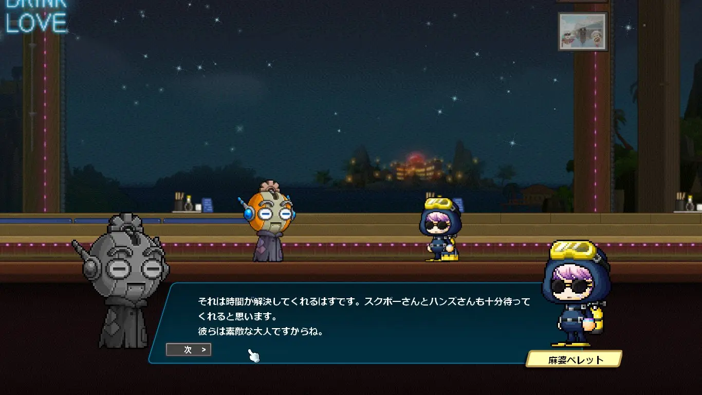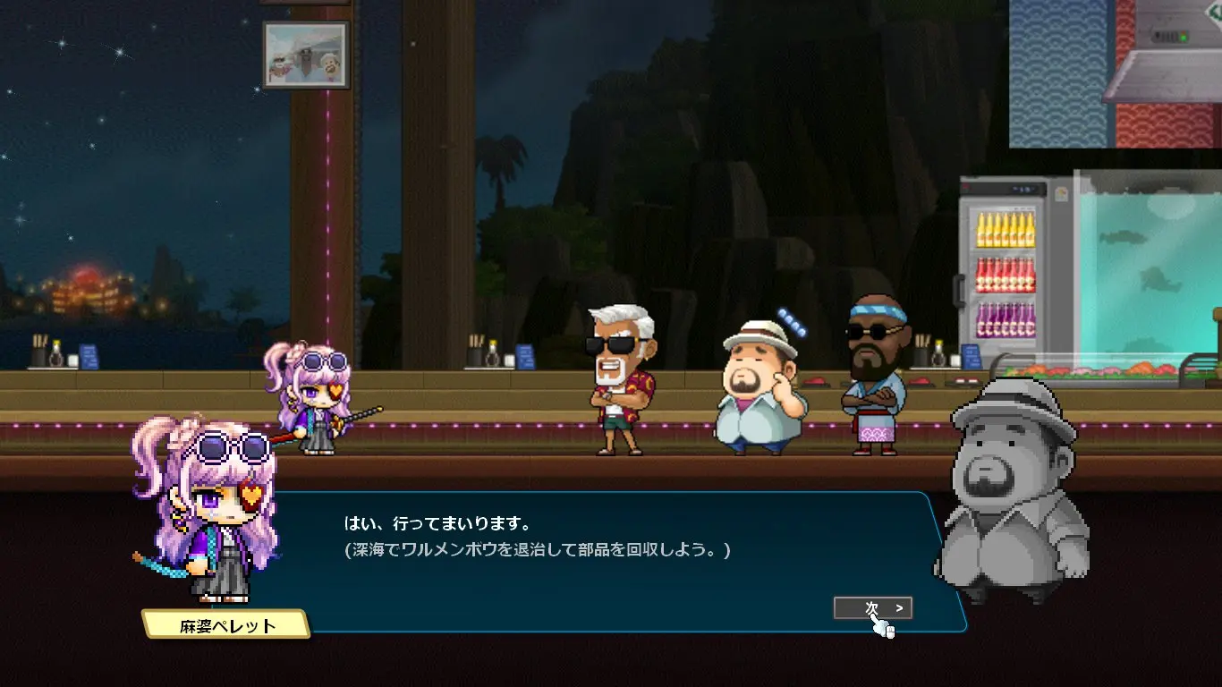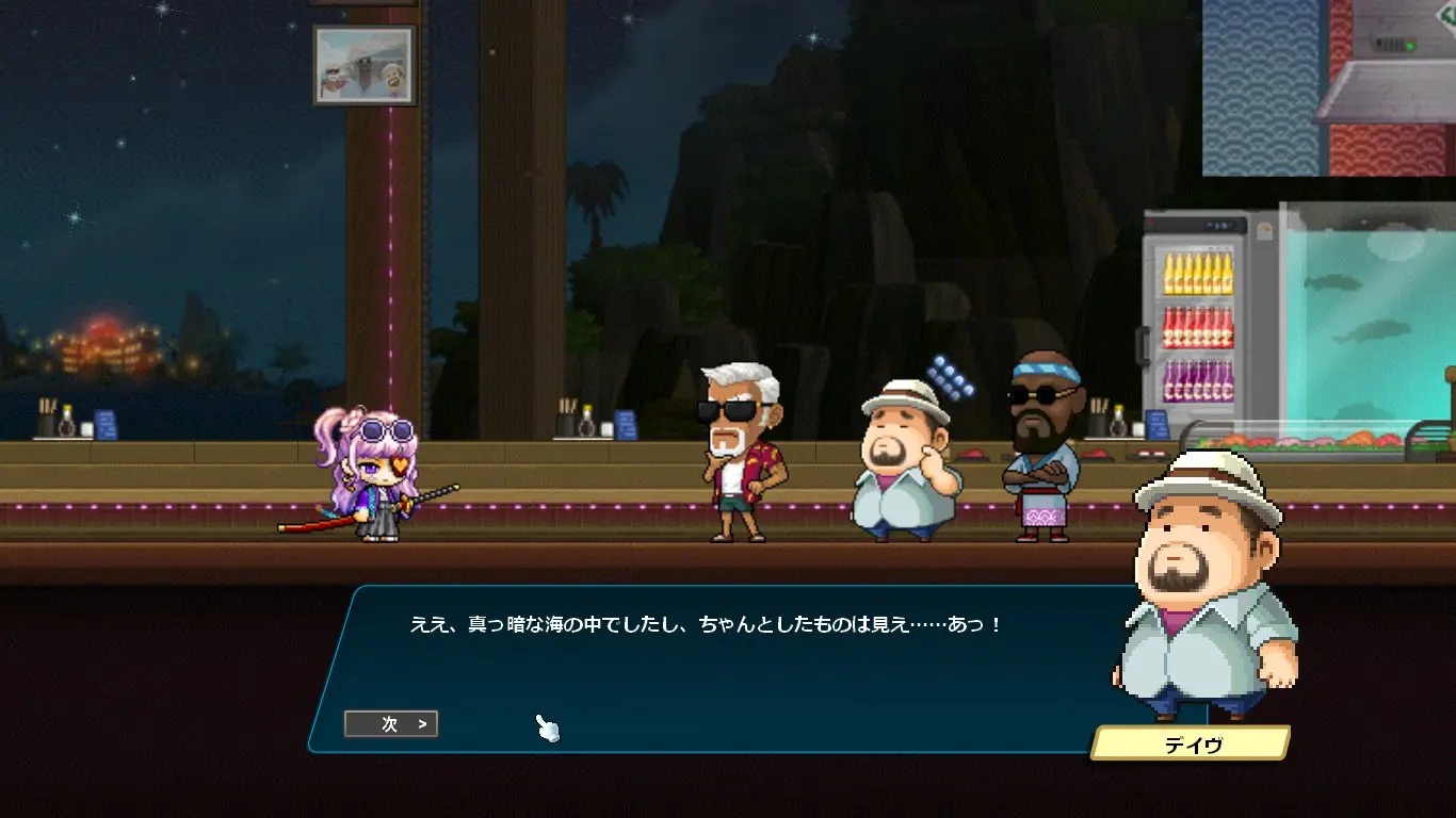 ストーリーはデイヴ・ザ・ダイバーのキャラクターの話になるかと思いきや、ほぼほぼメイプルのキャラクター同士の関係性の深堀をするストーリーでした。なんでこんな大事なことコラボでやるの?