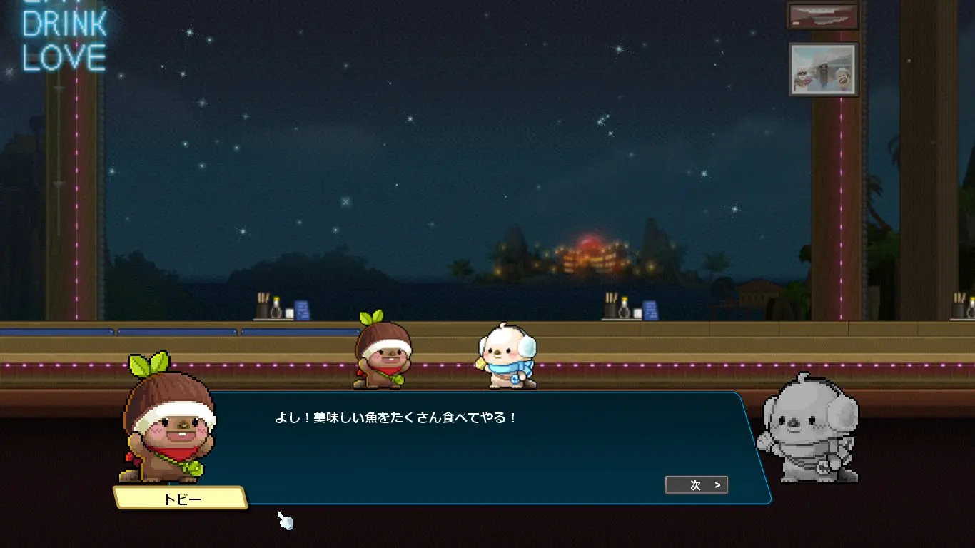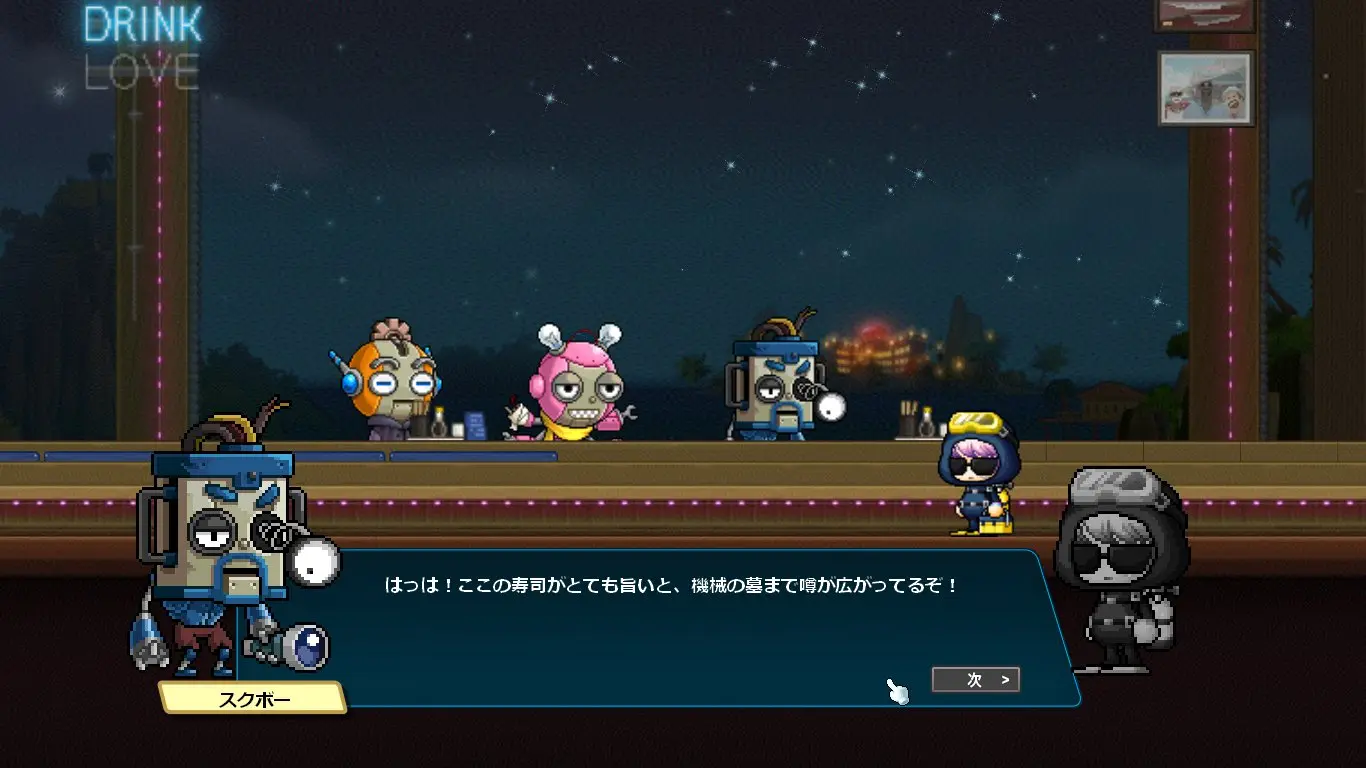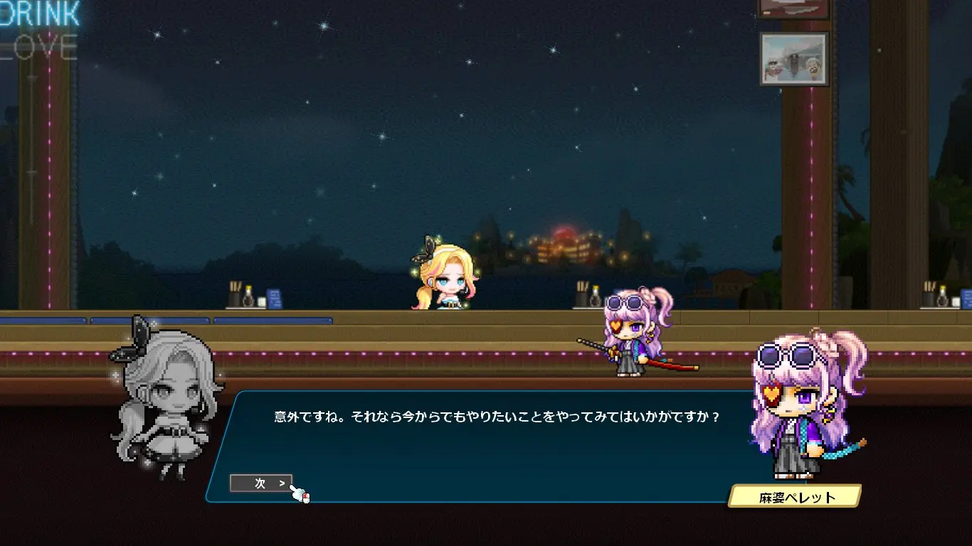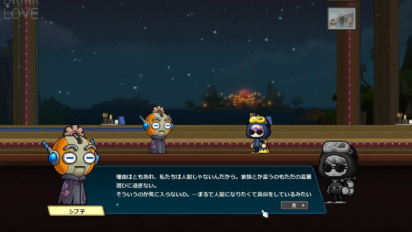 ストーリーはデイヴ・ザ・ダイバーのキャラクターの話になるかと思いきや、ほぼほぼメイプルのキャラクター同士の関係性の深堀をするストーリーでした。なんでこんな大事なことコラボでやるの?