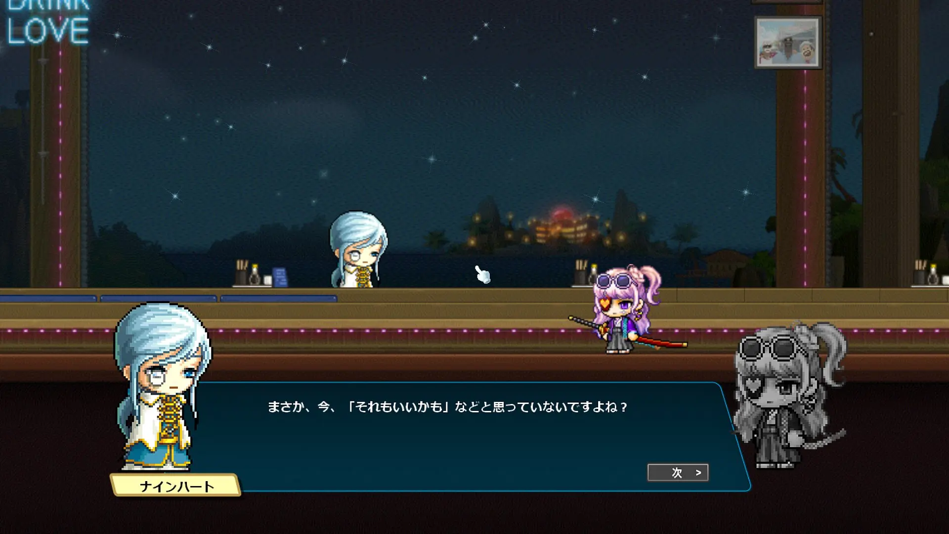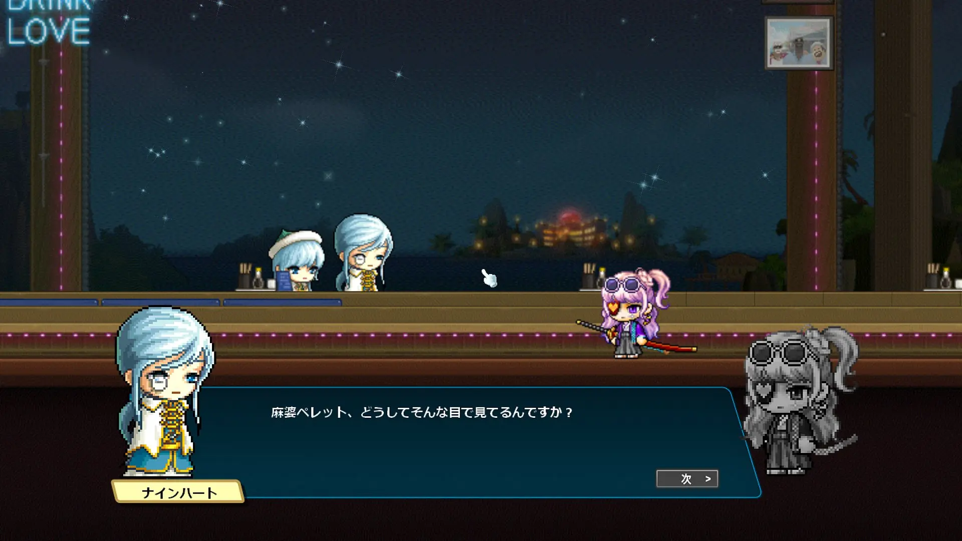 ナインハート「どうされました?見てはいけないものを目の当たりにしたような顔をして。私がこういうお店に来てはいけませんか?」
