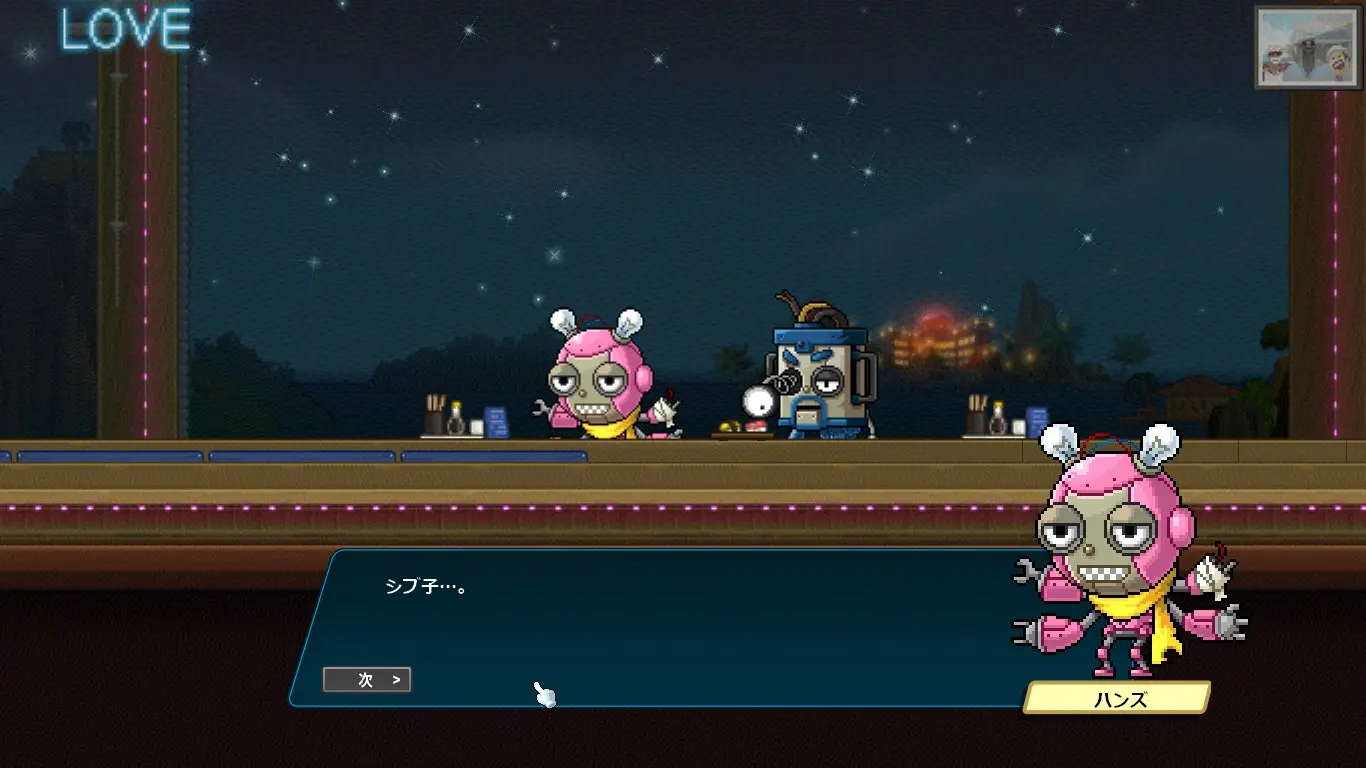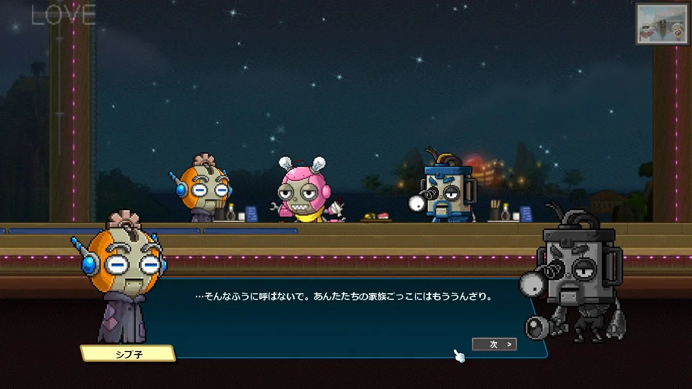 感情の芽生えに戸惑うシブ子ちゃんに優しく諭すプレイヤー。
