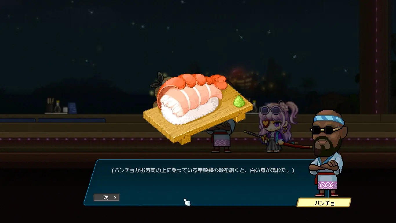 寿司を提供する方のミニゲームに登場するNPCの中には、期間限定イベントのNPCがチラホラ。